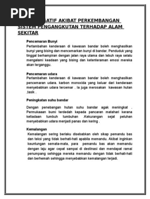 Kesan Negatif Akibat Perkembangan Sistem Pengangkutan Terhadap Alam Sekitar Pdf