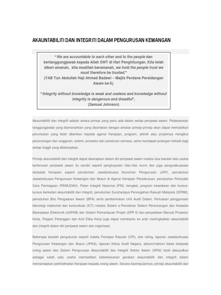 Akauntabiliti Dan Integriti Dalam Pengurusan Kewangan Pdf